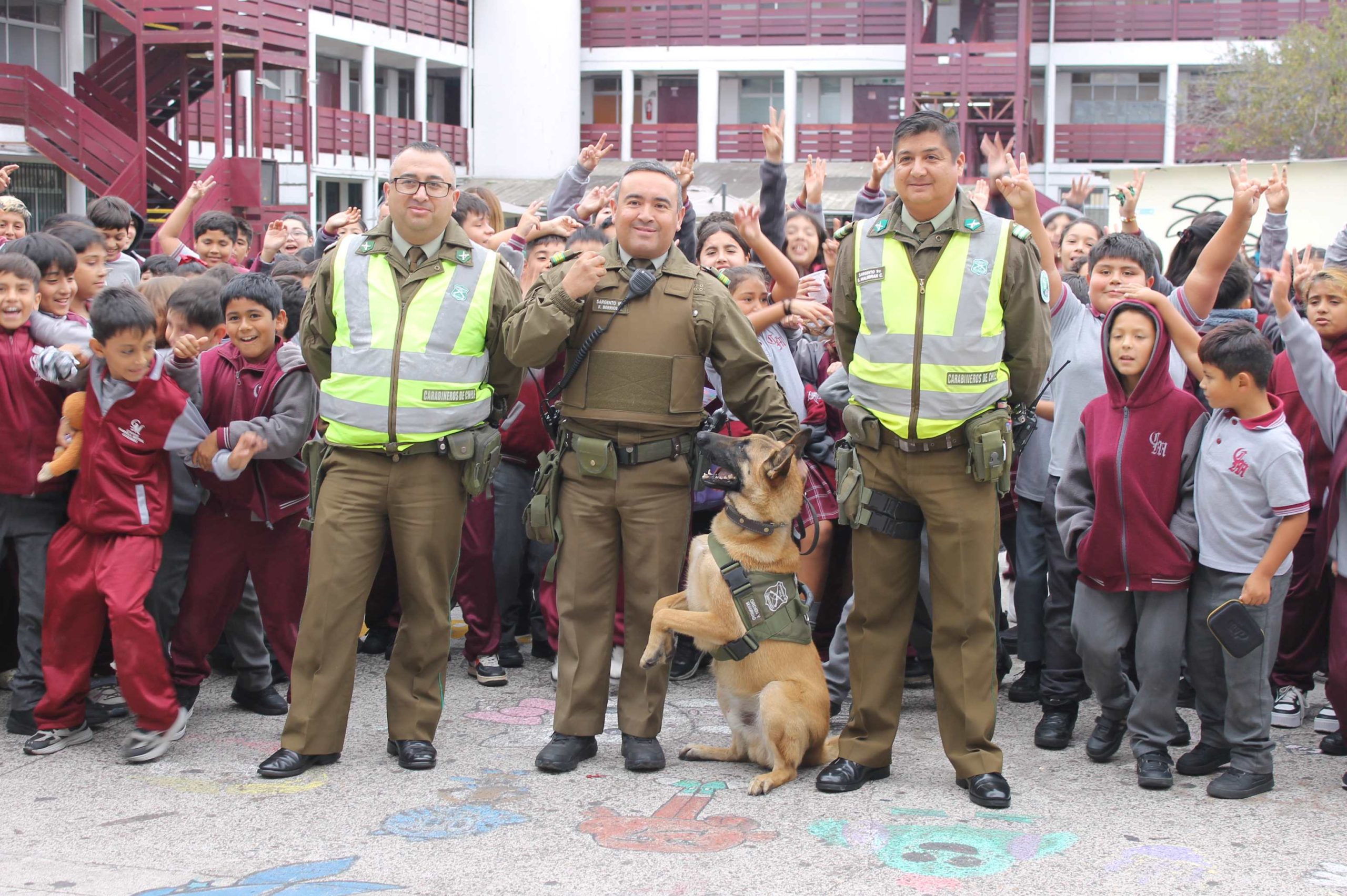Perro policía sorprende a estudiantes con demostración durante el recreo