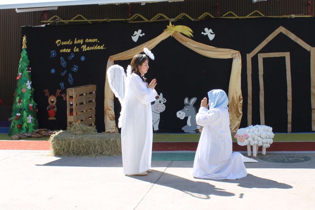 La actividad, que se hizo, tanto en la jornada de la mañana como de la tarde, tuvo como protagonistas a la virgen María, San José, el arcángel Gabriel, el mensajero del rey Herodes y los Reyes Magos, quienes, con una puesta en escena lúdica y educativa, incorporaron en la dinámica a las y los estudiantes, los cuales bailaron al son del Burrito Sabanero, Campana sobre campana y Feliz Navidad.