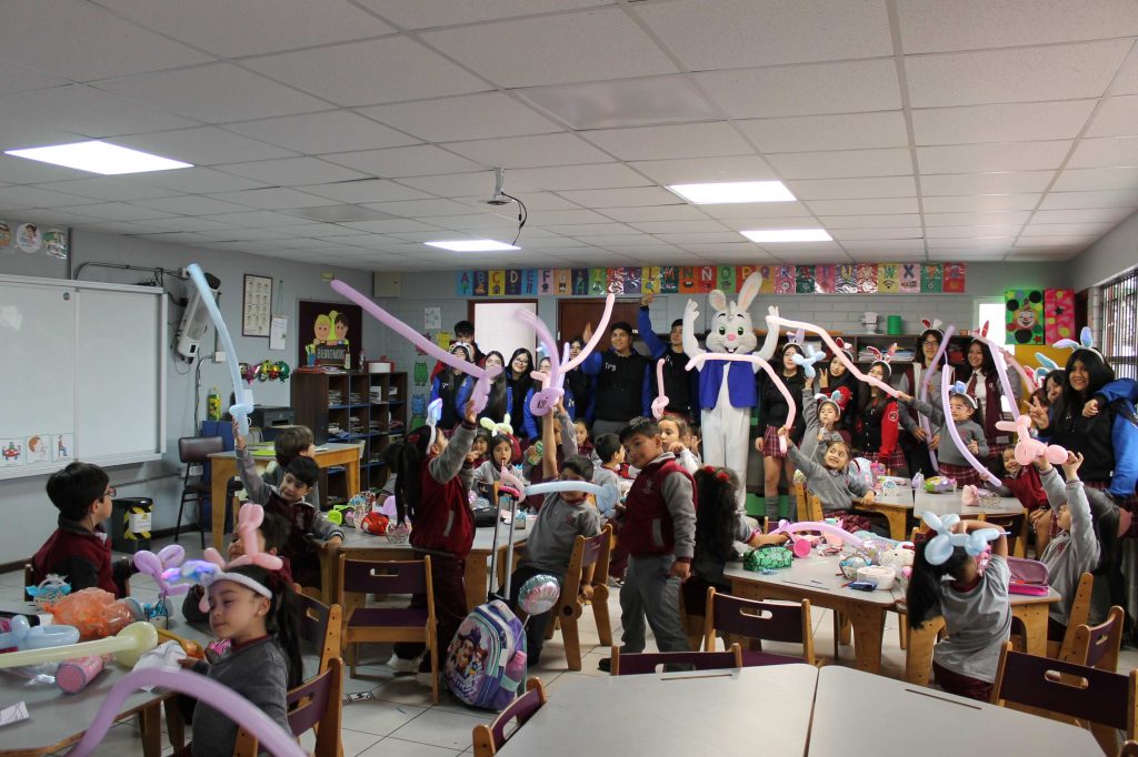 El pasado 6 de abril, el colegio celebró el “Lunes de Resurrección” actividad tradicional en la que las y los estudiantes de cuarto medio llevan huevitos de chocolate a los prekínder y kínder, realizando, además, actividades relacionadas con la Pascua de Resurrección.