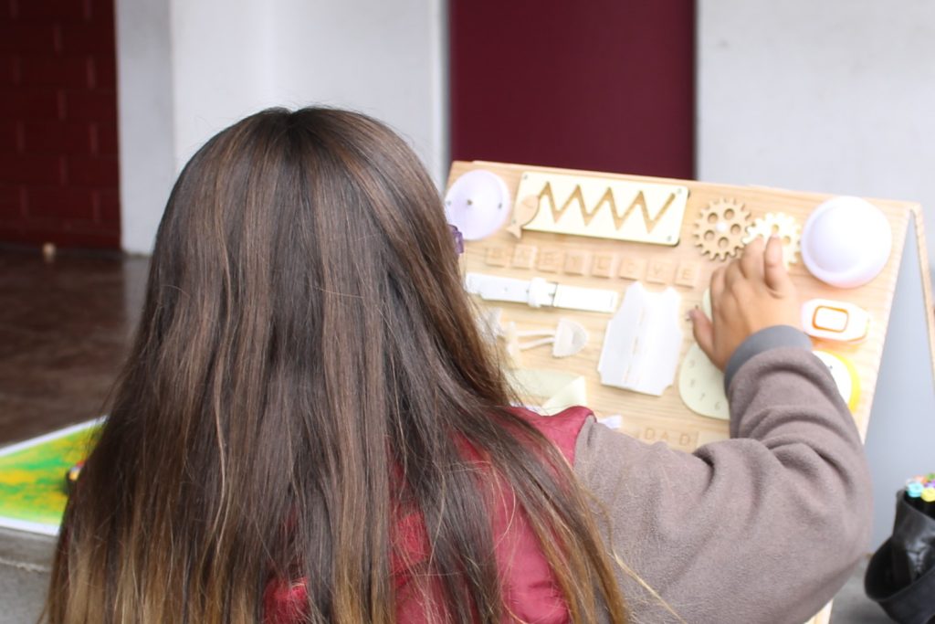 Uno de los espacios más llamativos fue un mesón donde, mediante el uso de audífonos con sonidos intensos, los participantes debían resolver ejercicios de cálculo o comprensión lectora, simulando las dificultades que genera el exceso de ruido en el aula. Asimismo, se incorporaron experiencias relacionadas con texturas y estímulos táctiles, permitiendo evidenciar cómo ciertos materiales o sensaciones pueden resultar incómodos o incluso dolorosos.