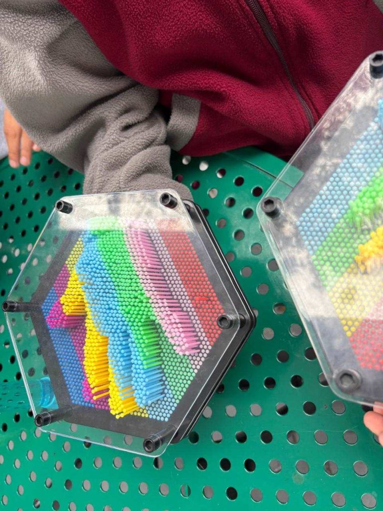 Otra de las experiencias consistió en identificar objetos únicamente a través del tacto, reforzando la comprensión sobre las dificultades sensoriales que pueden experimentar algunos estudiantes. A esto se sumó material informativo sobre el autismo, junto a actividades prácticas con distintas texturas.
