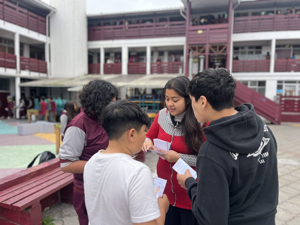 Catalina Pizarro, psicóloga del equipo de Convivencia Escolar de enseñanza media, sostuvo que la intervención se hizo con el propósito de visibilizar la salud mental, tanto en básica como en media, “entregamos afiches informativos a las y los estudiantes de educación media. Afiches que dicen relación a que hoy es el Día de la Salud Mental, a números a los que ellos pueden contactar para acceder a información, a consejos, a acompañamiento psicológico que está disponible para ellos y también información sobre como ellos pueden preocuparse trabajar y mejorar su salud mental”.